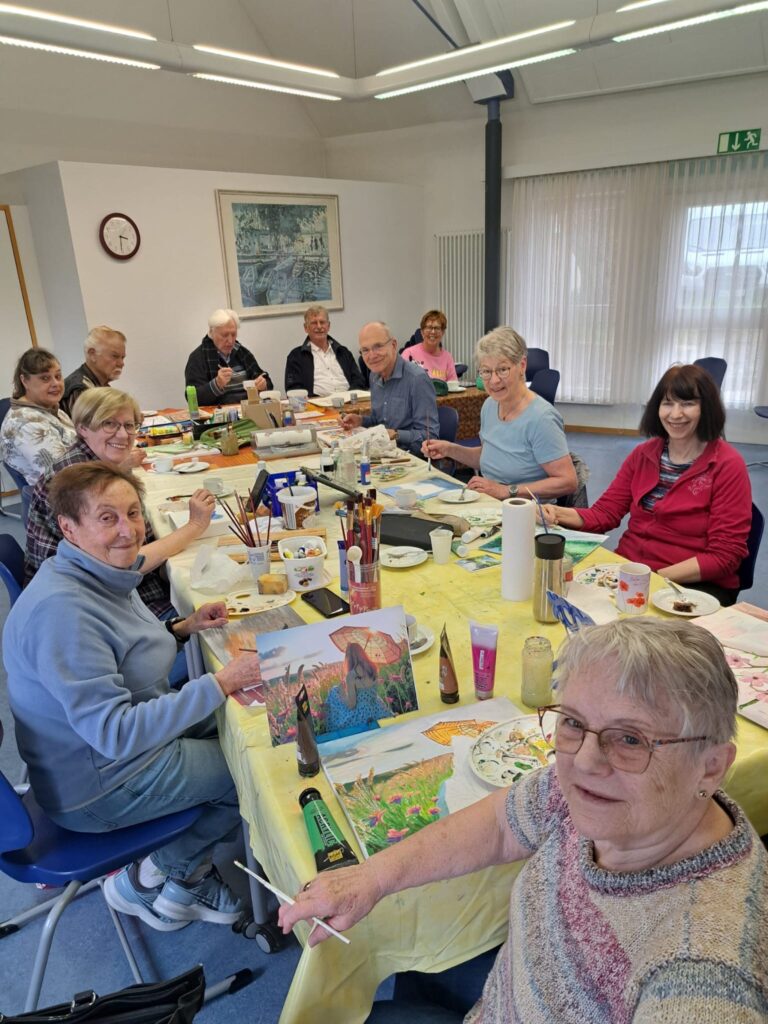 15.04.2026 Ein ungezwungenes Treffen zum Malen, Plaudern und Genießen – meist gibt es Kuchen zum Kaffee. Die meisten arbeiten mit Acrylfarben, doch jede und jeder entscheidet selbst, was und wie gemalt wird. Die entstandenen Werke sind im Spätjahr im Eingangsbereich des Bürgertreffs zu bewundern.